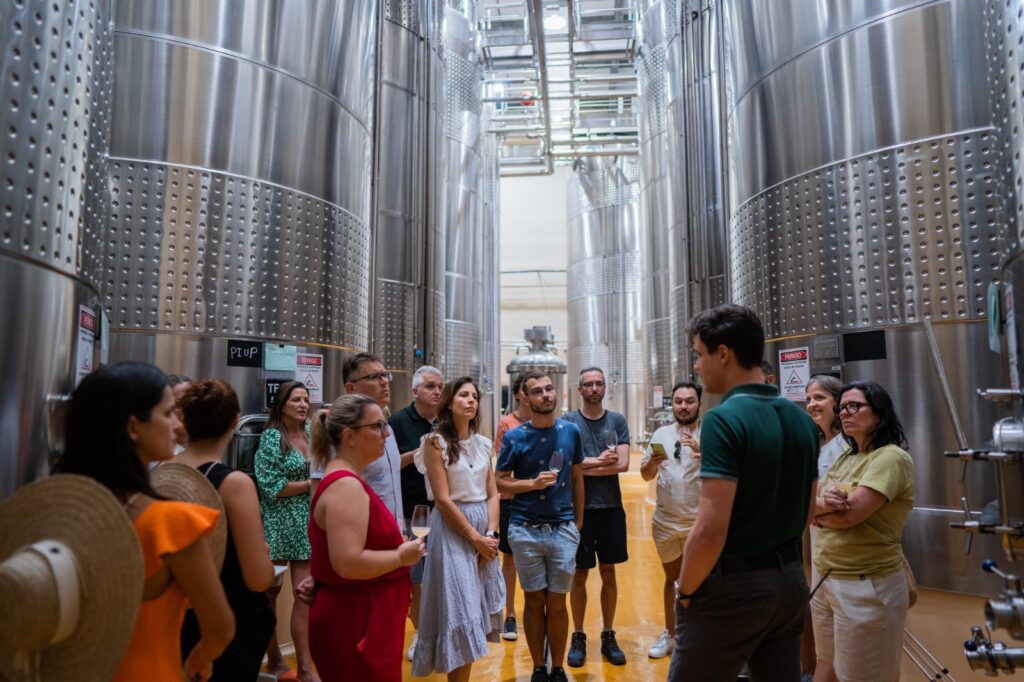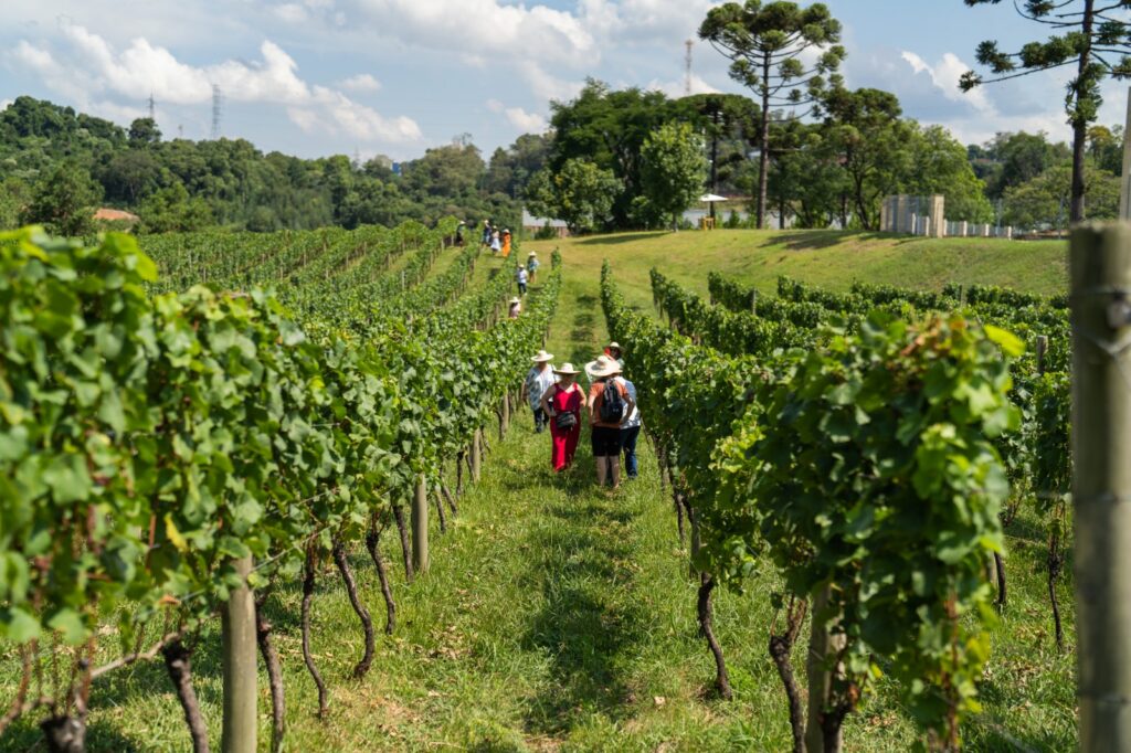 O percurso começa no campo, onde é possível compreender o manejo sustentável dos vinhedos e a importância da colheita no ponto ideal de maturação. É nesse momento que a vindima se mostra como um trabalho coletivo, que une agrônomos, enólogos e famílias de viticultores em torno de decisões fundamentais para a qualidade dos vinhos base.